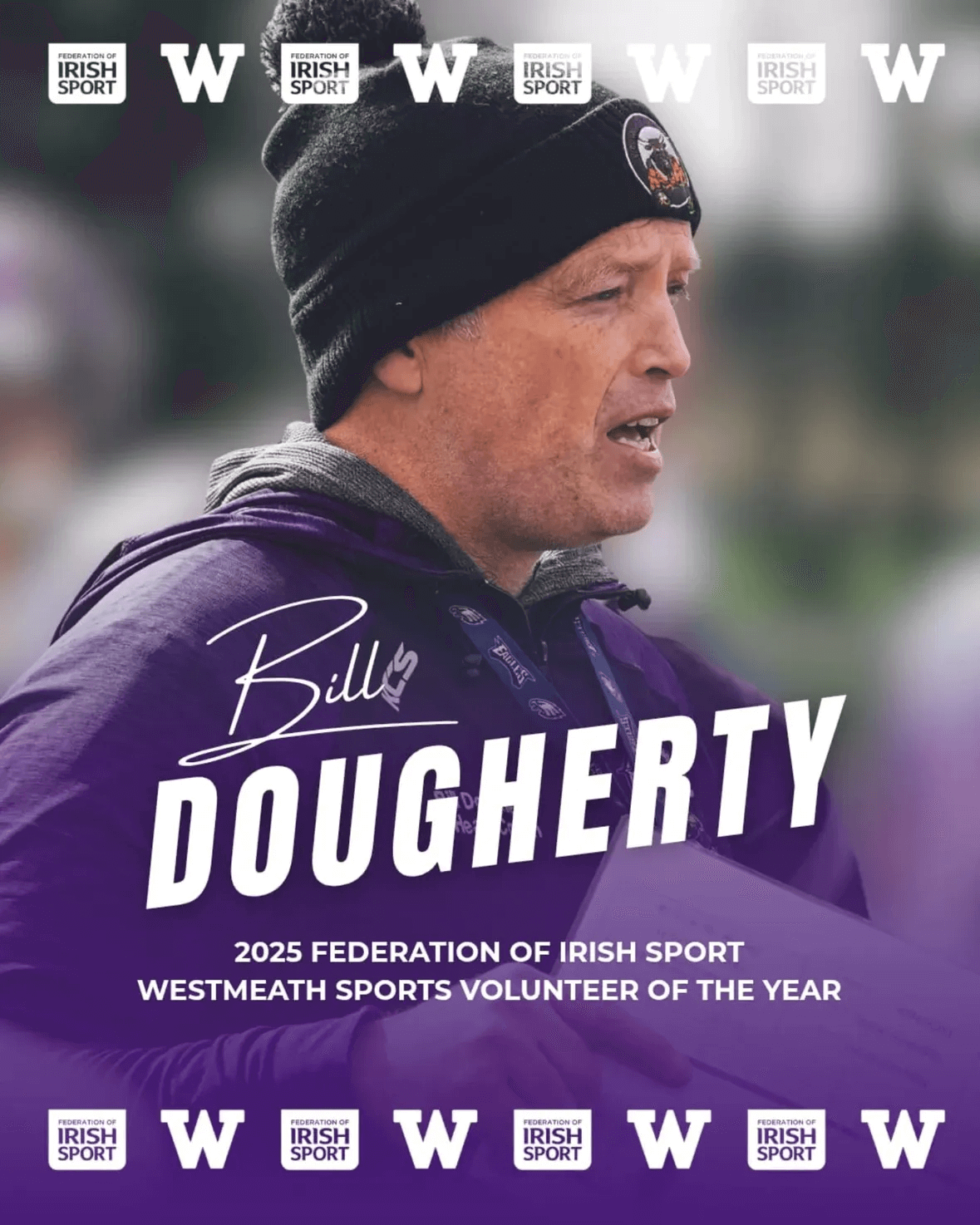 We are thrilled to announce that longtime Westmeath Minotaur Bill Dougherty has been selected by the Federation of Irish Sport as their 2025 winner for Westmeath Sports Volunteer of the Year!